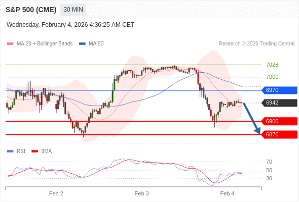 在 6970 之下,看跌,目标价位为 6900 ,然后为 6870 。