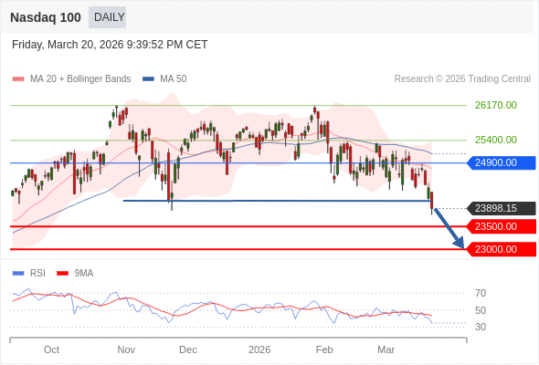 纳斯达克100 短线: 存在压力。