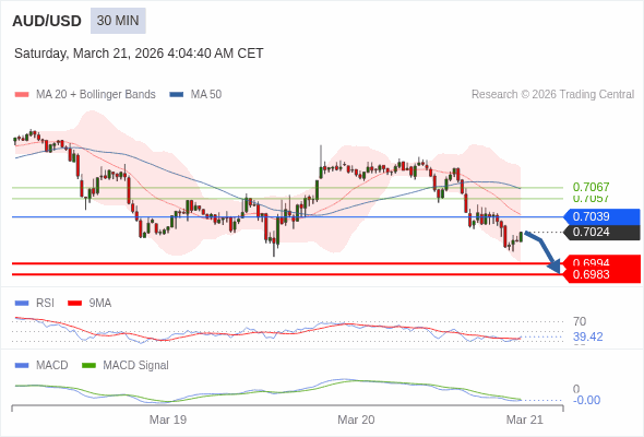 交易策略: 看跌,在 0.7039 之下。